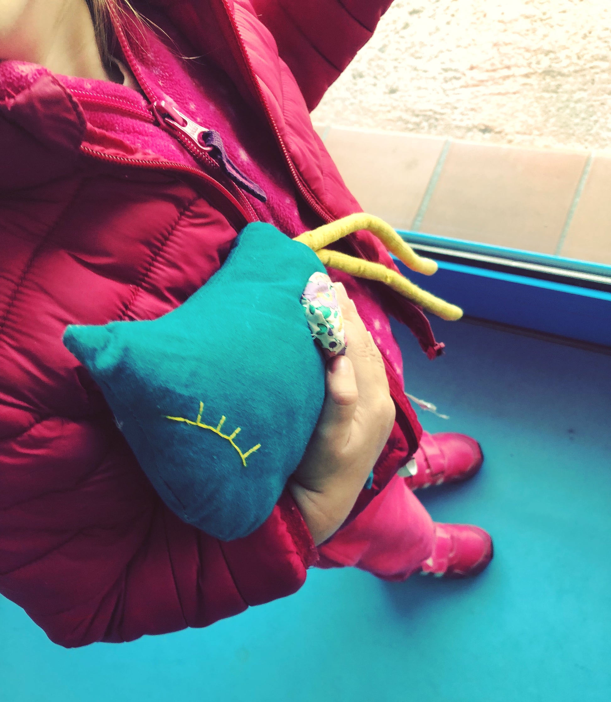 Je vous l’ai partagé et j’ai rapidement pensé à le transformer en doudou, Salomé et Daphné ont été mes premières testeuses et elles l’ont tout de suite adopté, Daphné l’a même renommé « Coco » et ne le lâche plus.