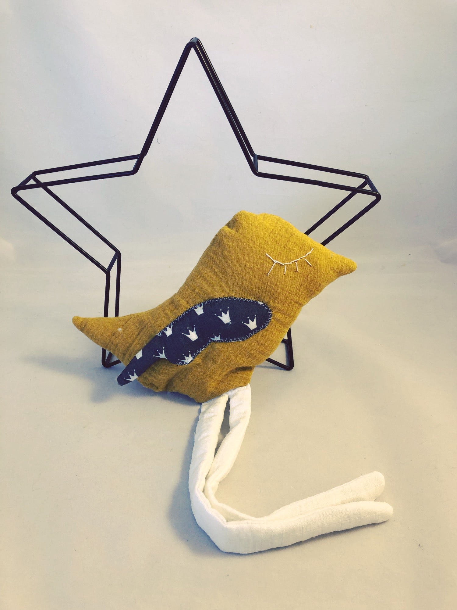 Son entretien se fait en machine à 30°, pas de sèche linge pour préserver les yeux en thermocollant. Les tissus sont lavés avant d’être cousus