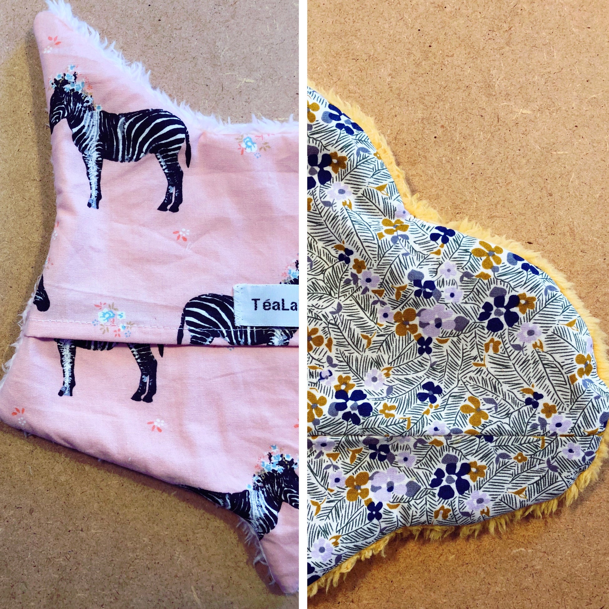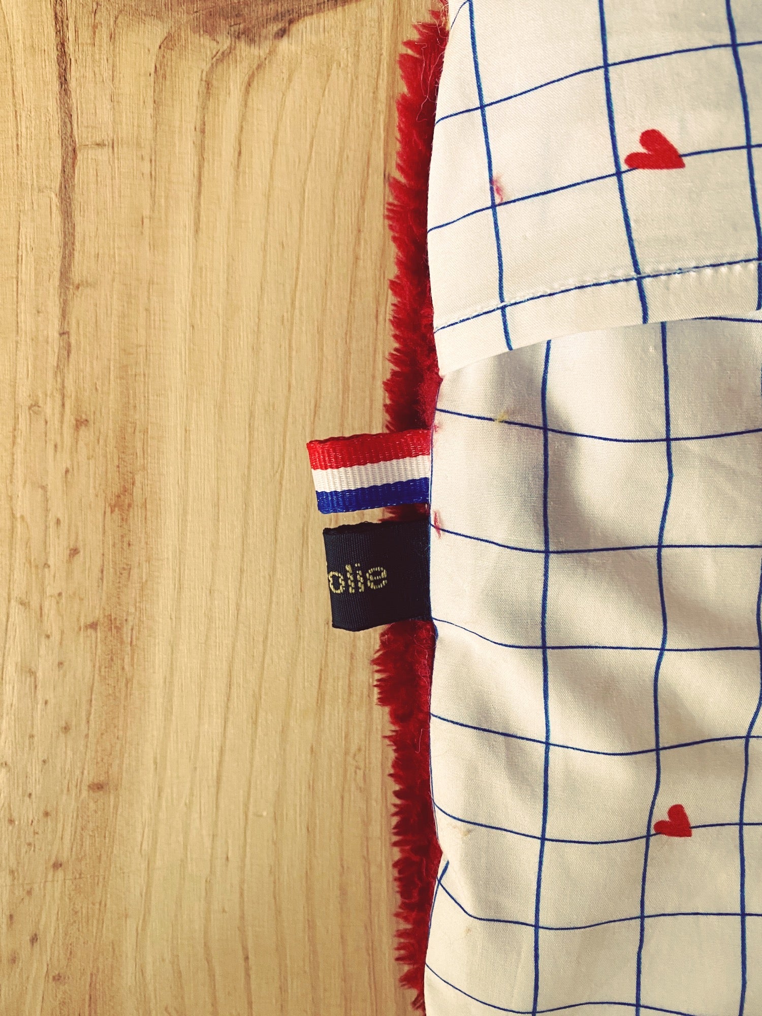 Vous avez donc le choix pour la confection de la pochette extérieure, avec d’un côté un tissu doudou et de l’autre un tissu à motif.