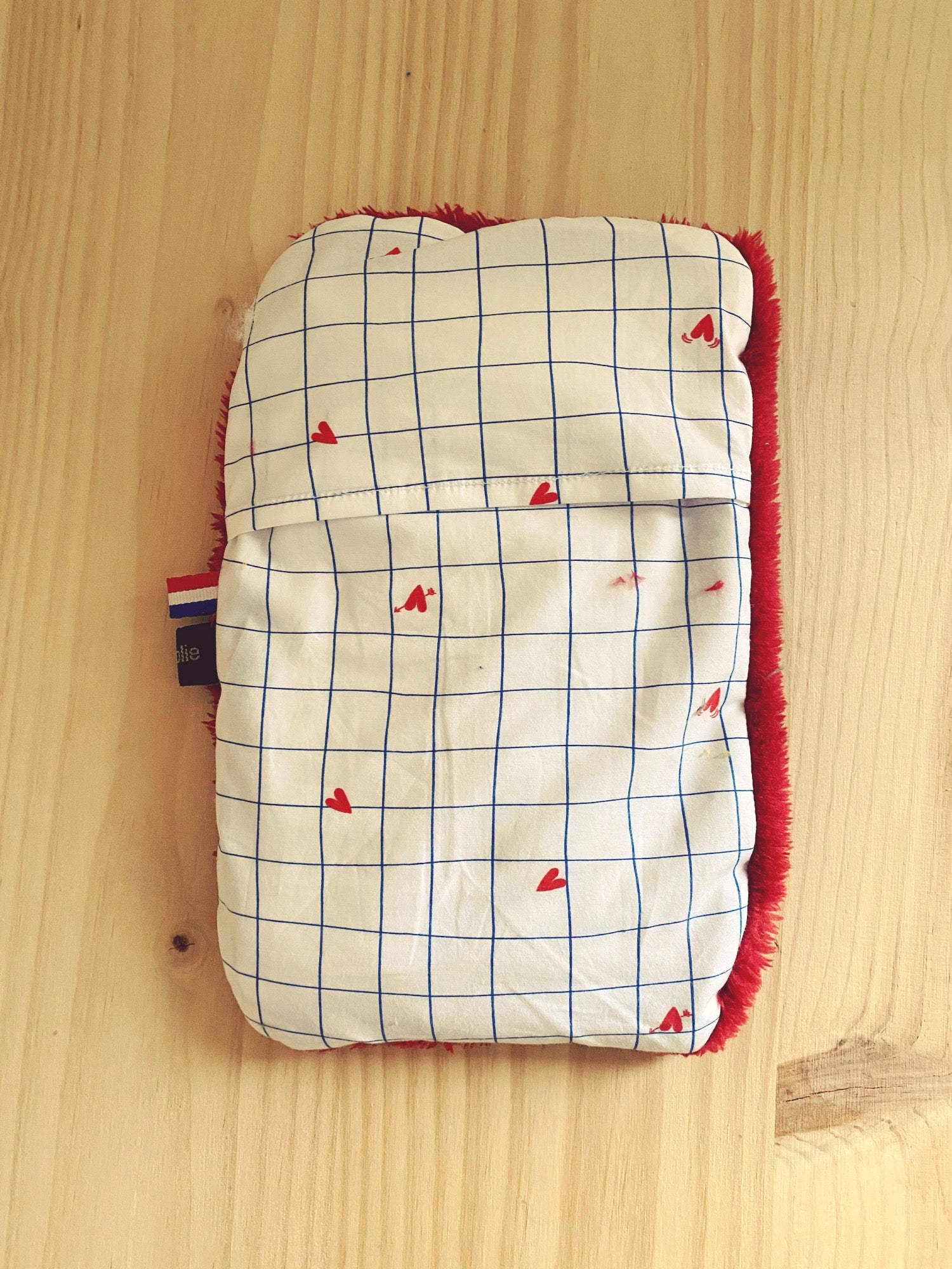 Cela permet de laver sans soucis la poche extérieure qui est au contact de la peau. La 1ère poche est réalisée avec un tissu épais, afin de pouvoir le chauffer au micro ondes sans inquiétude.