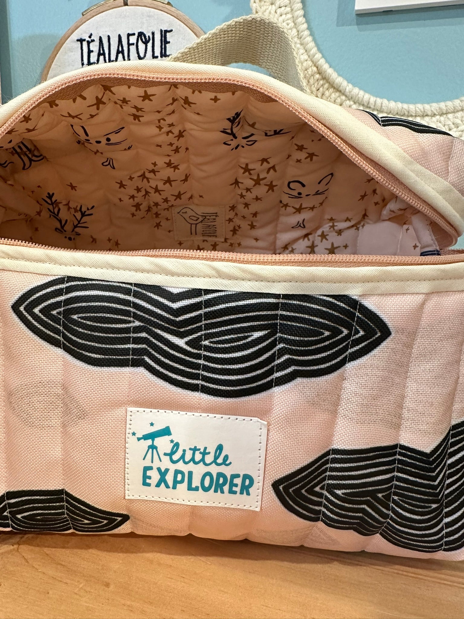 composition : tissu enduit motif et tissus coton, fermeture éclair, ouate